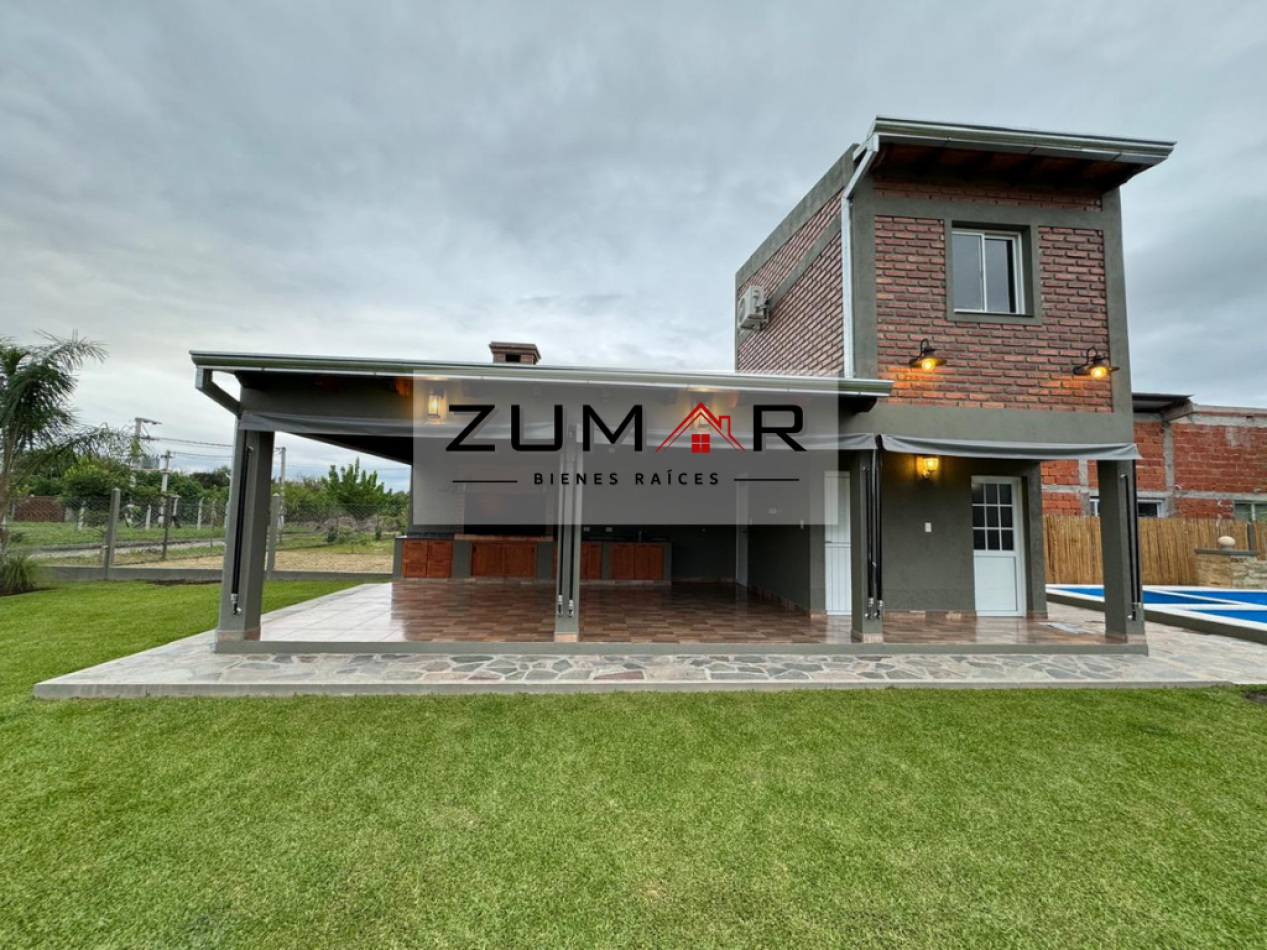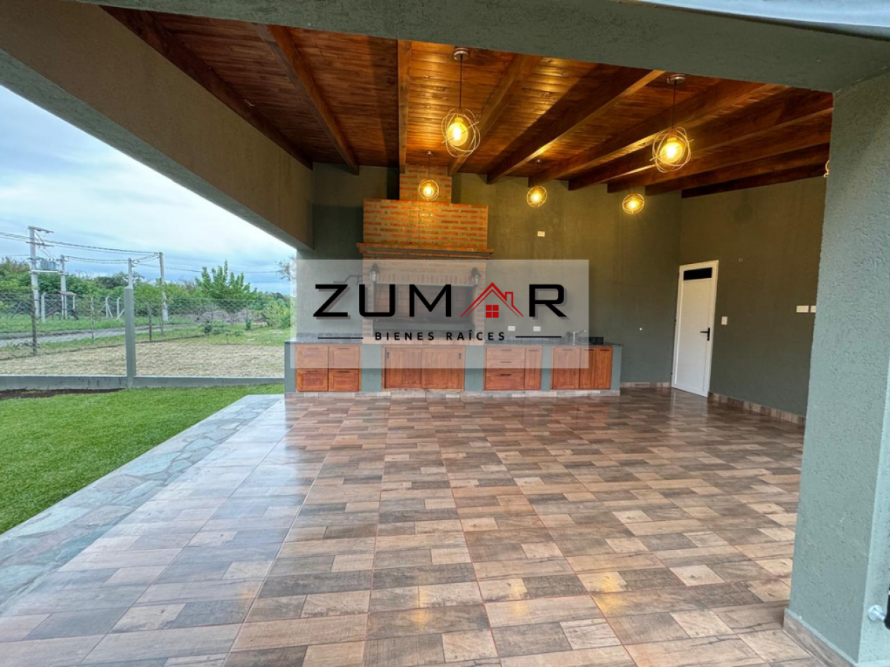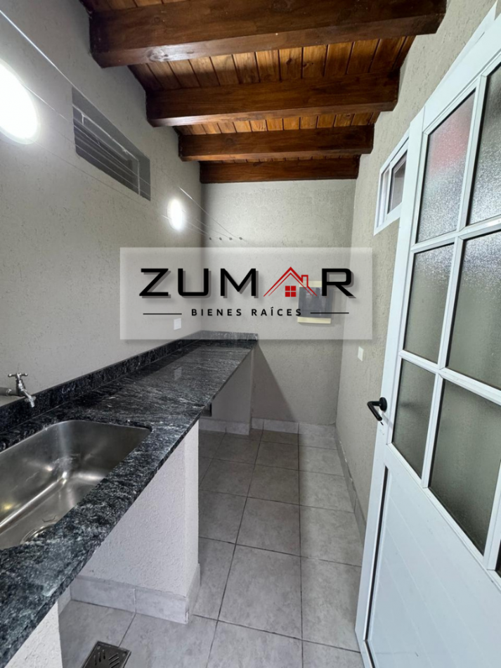Quincho con asador, lavadero, baño y un dormitorio.